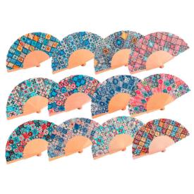 Questo incantevole ventaglio artigianale è realizzato in legno dipinto a mano in sei vivaci tonalità di colo...