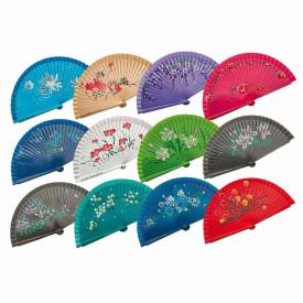 Questo incantevole ventaglio artigianale è realizzato in legno dipinto a mano in sei vivaci tonalità di colo...