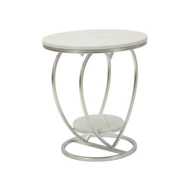Tavolinetto Istanbul, struttura elegante in metallo silver con piano effetto marmo. Perfetto come complemento ...