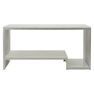 Tavolo da caffè Kayseri, struttura moderna in metallo silver con doppio piano effetto marmo. Elegante e versa...