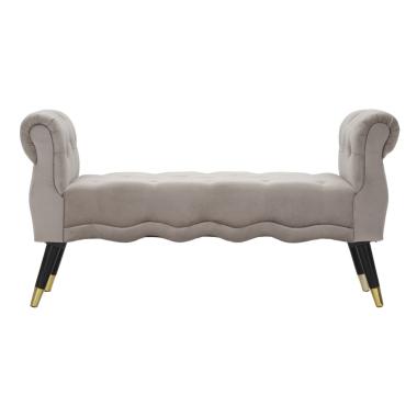Panca in legno e velluto grigio. Maestose sedute dalla finitura dorata che si ispirano ai camerini delle grand...
