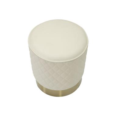 Pouff rotondo bianco trapuntato in simil pelle con base oro aggiunge un tocco di luminosità a qualsiasi spazi...