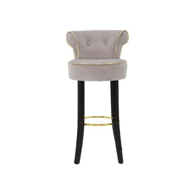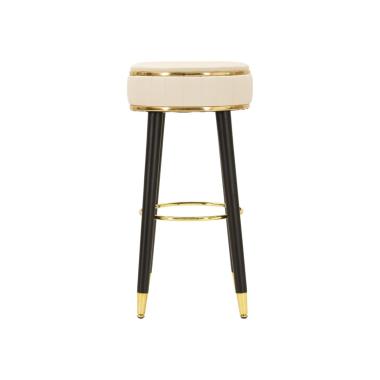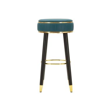 Sgabello bar rotondo imbottito in velluto sintetico con schienale con poggiapiedi in metallo dorato. La forma ...