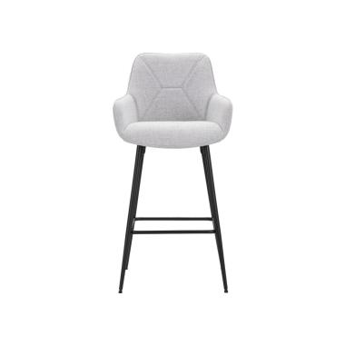 Set di 2 sgabelli bar in tessuto imbottito complete di pratico bracciolo. Il tessuto insieme alle gambe e al p...