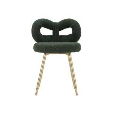 Sedia Mini Ilary verde, elegante e di carattere, con morbido rivestimento bouclé e gambe dorate. Ideale per a...