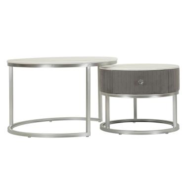 Tavoli da caffè Greys, coppia moderna con struttura in metallo silver e piano effetto marmo, perfetti per amb...