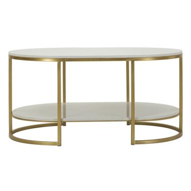 Tavolo da caffè Izmir, design elegante con doppio piano effetto marmo e struttura dorata. Perfetto per ambien...