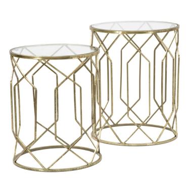 Coppia di tavolinetti rotondi in metallo e vetro. Il dorato abbinato al vetro crea un forte impatto. Un elemen...