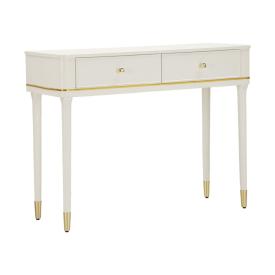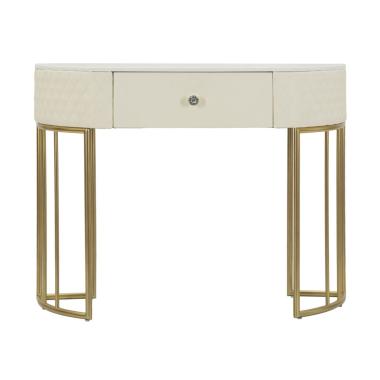 Console da muro elegante e sofisticata in simil pelle trapuntata, con gambe dorate e un pomello a forma di bri...