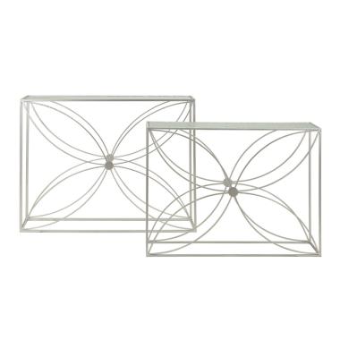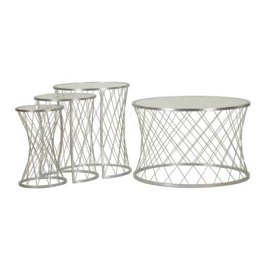 Set di 4 tavolinetti in metallo argentato con un design a rombi e top in vetro temperato. Perfetti per dare un...