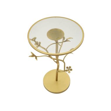 Tavolinetto Birds Glass, struttura dorata con rami intrecciati e piano in vetro. Ideale per dare leggerezza e ...