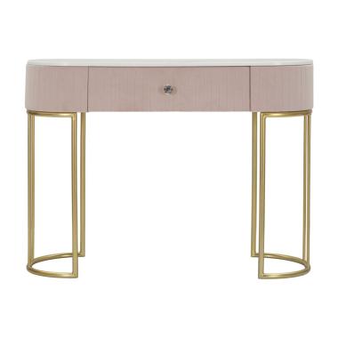 Console rettangolare con i lati smussati con cassetto. La struttura in metallo dorato, la parte superiore rive...