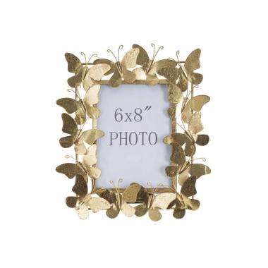 Elegante cornice portafoto in metallo dorato impreziosita da farfalle. Un tocco glam che dona luminosità ad o...