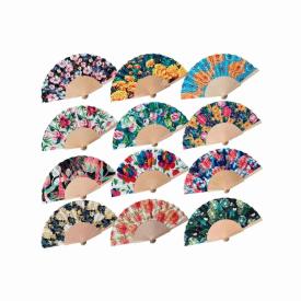 Ventaglio in tessuto e manico di legno, tinta unita.