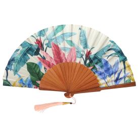 Ventaglio in tessuto e manico di legno, con temi siciliani.